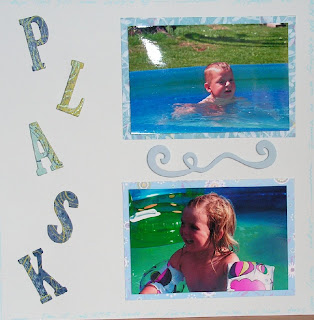 Snart är den här helgen över och liiiite utvilad känner jag mig nog. Igår fick man ju lite sol på sig och bara det gör ju att man blir lite piggare. Visar en LO jag fick ihop idag. Bokstäver chipboard från K&Company. Swirl målad med akrylfärg ”sky” Making Memory. Doodling runt kanterna med Soufflépenna. DCWV-papper bakom fotona. Vill även färga in kanterna men har ingen blå dyna så jag tar det sen.