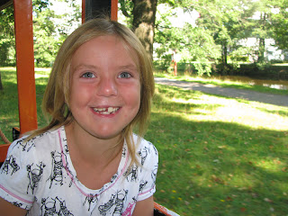 Igår var jag och Emma iväg till Stora holmen. Storebror var med en kompis hela dan. Vi åkte tåg, trampbil, såg lite djur och åt glass. Tog en liten båt över till stadsparken där Emma badade lite och sprang under blommorna som sprutade vatten. Innan det hade vi hälsat på där jag jobbar på sjukhuset. En riktigt lyckad och rolig dag hade vi som fortsatte när vi kom hem med poolbad och hon lekte med dockan! hör och häpna. :)