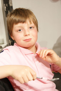 Hipp Hipp Hurra, Emmas dag idag! Nu är lilltjejen 7 år och vi har idag sjungit, fikat och öppnat presenter. Emma önskade sig chokladtårta, ingen grädde. Så jag gjorde en kladdkaka som blev väldigt god och så hade vi glass till det. Hade florsocker över kakan och jag hade ju tänkt göra ett hjärta efter en mall, eller rättare sagt så gjorde jag det…meeeen det blev inge bra!… I morse fick hon lite nya kläder att ha på sig till skolan, och ikväll en massa scrapbooking-grejer! Hon ville genast börja pyssla men det är ju skola imorgon så vi bestämde att ta det i helgen. Det kanske kan få fart på mitt scrappande också…mmm vem vet ;) William var så gullig också och gav henne sin äldre modell av digitalkamera som han fått av farfar, det tyckte hon var lite kul. Nu kan hon fota lite själv och när vi framkallat det kan hon scrappa med dem.